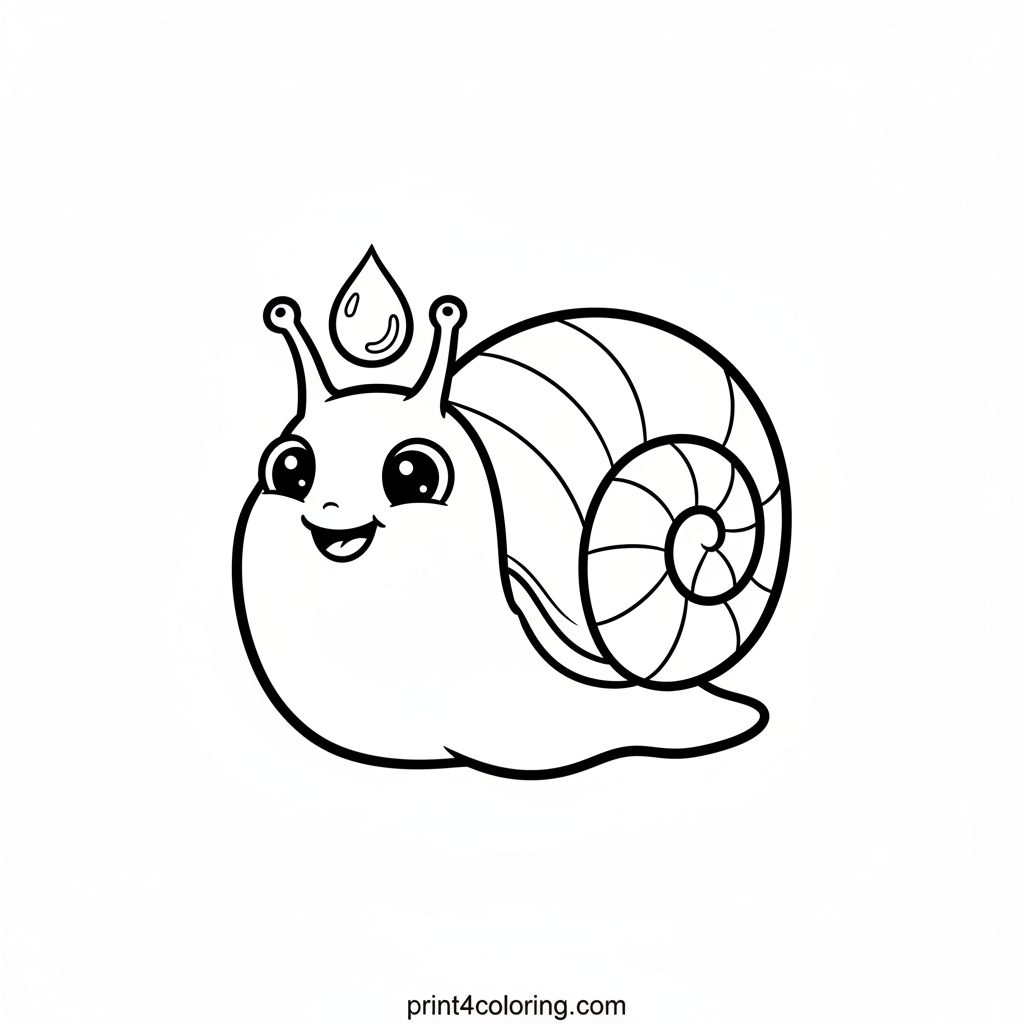 Discover a cheerful snail with big, gentle eyes and a happy smile! It wears a sparkling dewdrop on its head like a tiny hat. Its prominent, swirly shell is perfect for your vibrant colors. Bring this delightful garden friend to life with your imagination!
