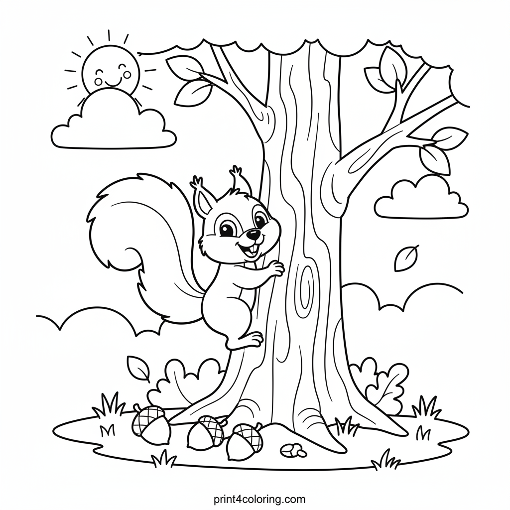 Get ready to color a cheerful squirrel on an exciting tree-climbing adventure! This energetic little friend has a big, bushy tail and is happily scampering up a sturdy tree trunk, ready to explore new branches. Bring this playful scene to life with your favorite colors and imagine the squirrel's next big leap!