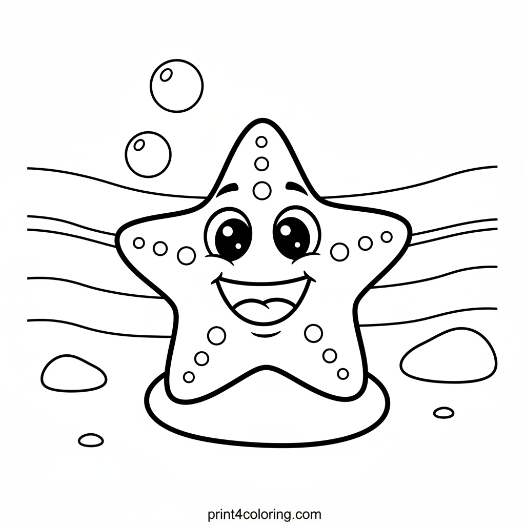 Happy Starfish's Ocean Smile Coloring Page