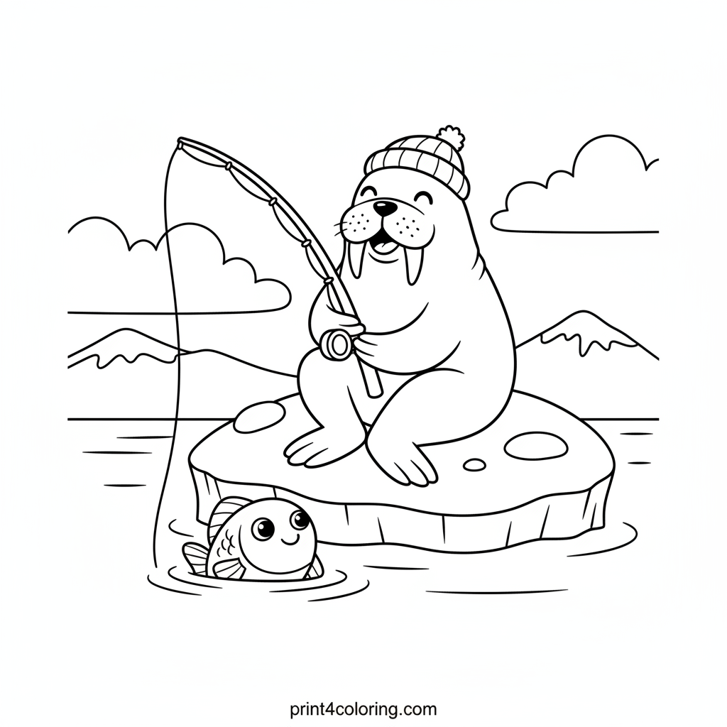 Happy Walrus's Icy Fishing Adventure Coloring Page