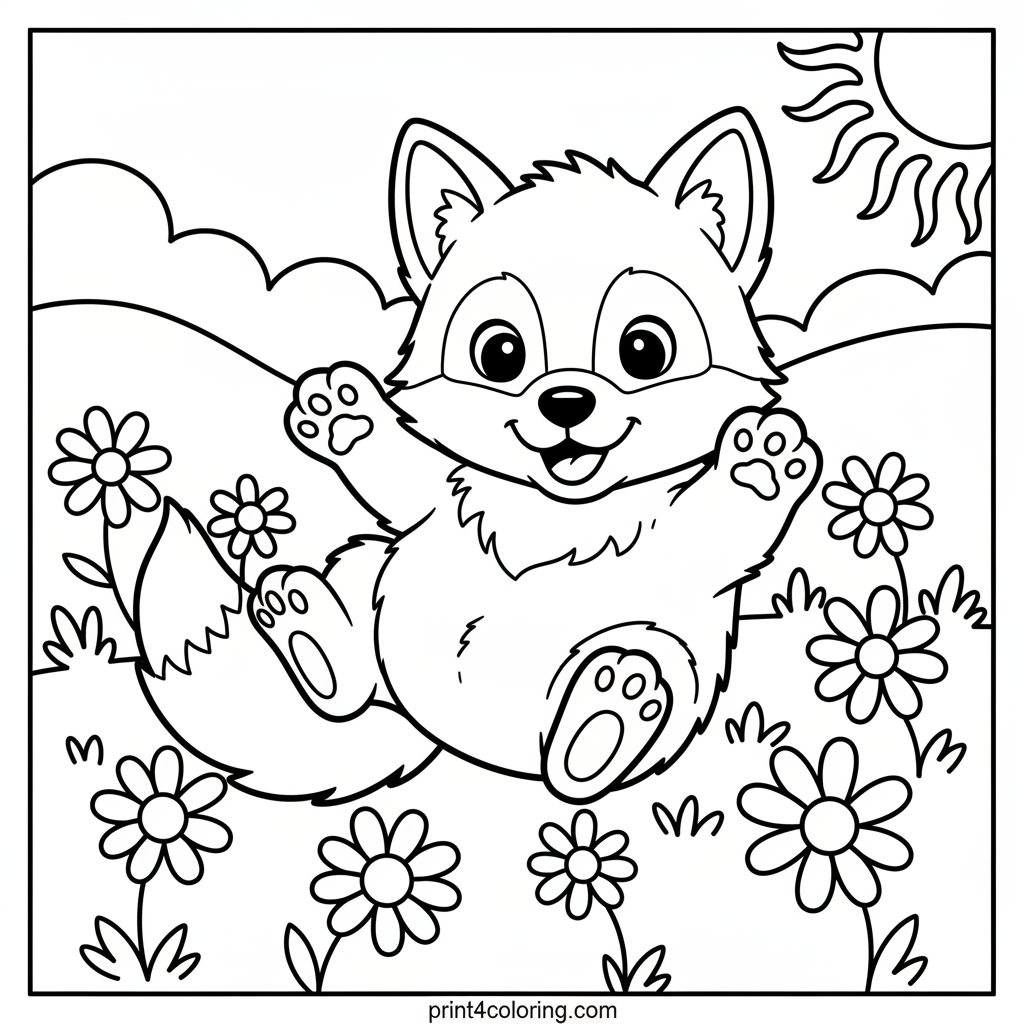 Joyful Wolf Pup in Daisy Field Coloring Page