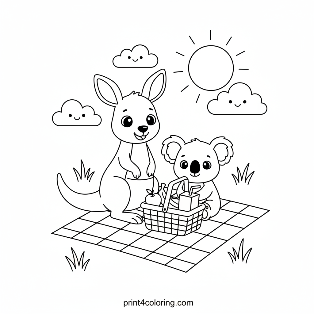 Kangaroo and Koala's Sunny Picnic Coloring Page