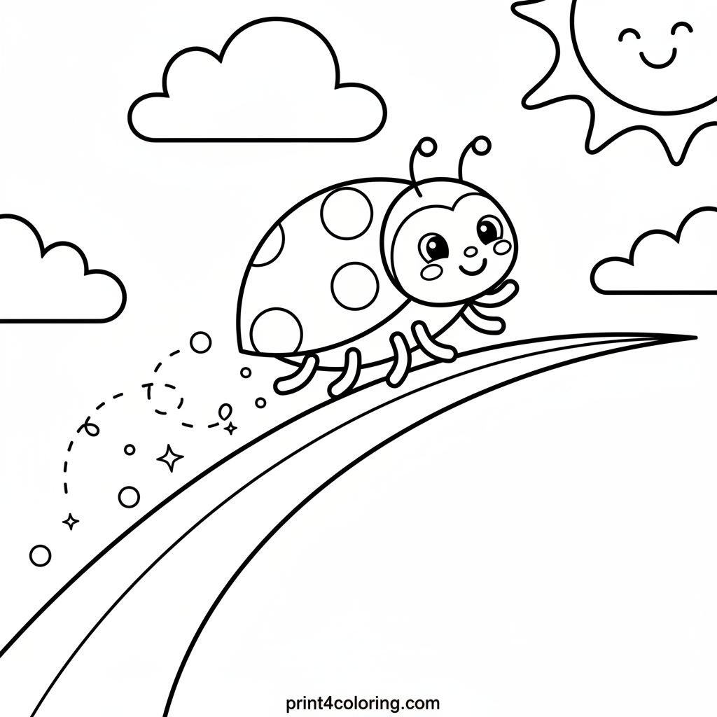 Join a determined little ladybug as it races across a vibrant green blade of grass! Watch its tiny legs pump with joy, leaving a trail of cheerful dust. This speedy insect is ready for you to add bright colors to its exciting adventure.