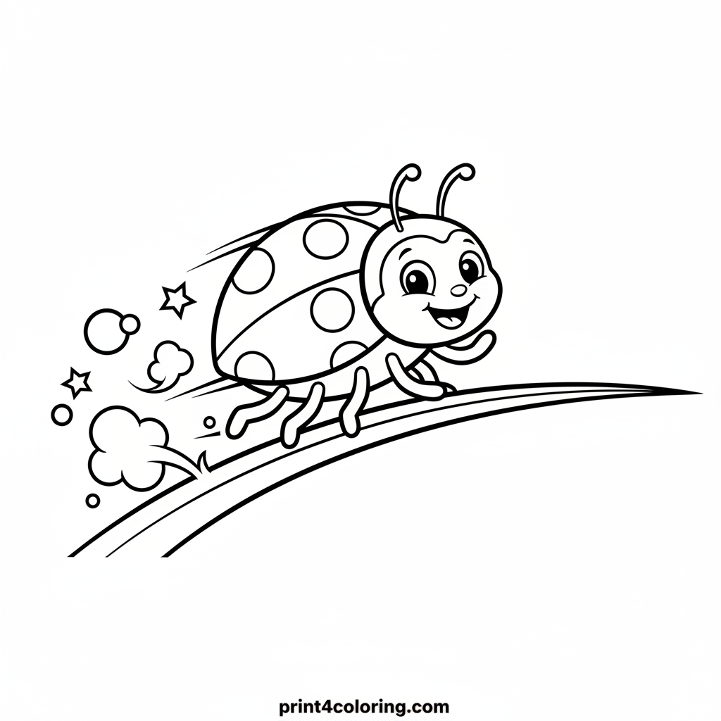 Join a determined little ladybug as it races across a vibrant green blade of grass! Watch its tiny legs pump with excitement, leaving a whimsical trail of happy dust behind. This speedy adventure is ready for your brightest colors to bring it to life!