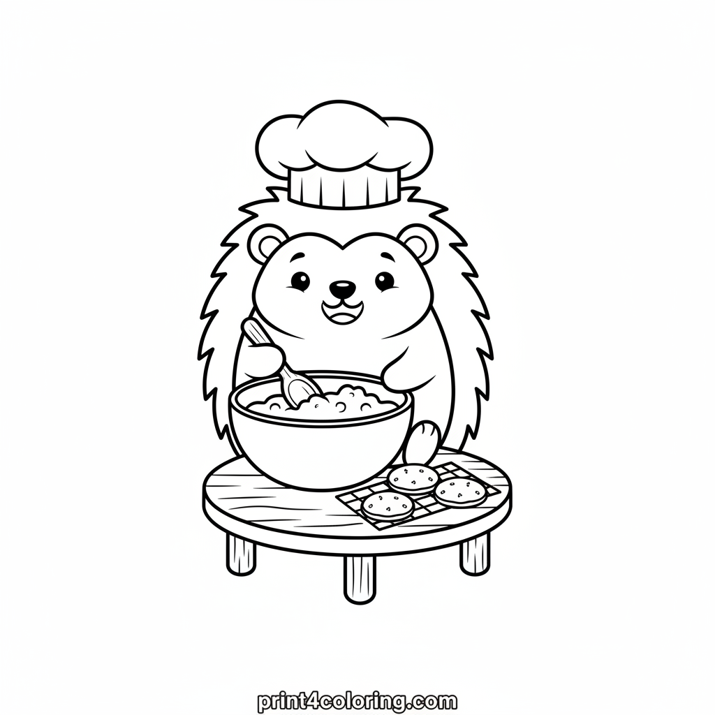 Little Chef Hedgehog's Baking Adventure Coloring Page