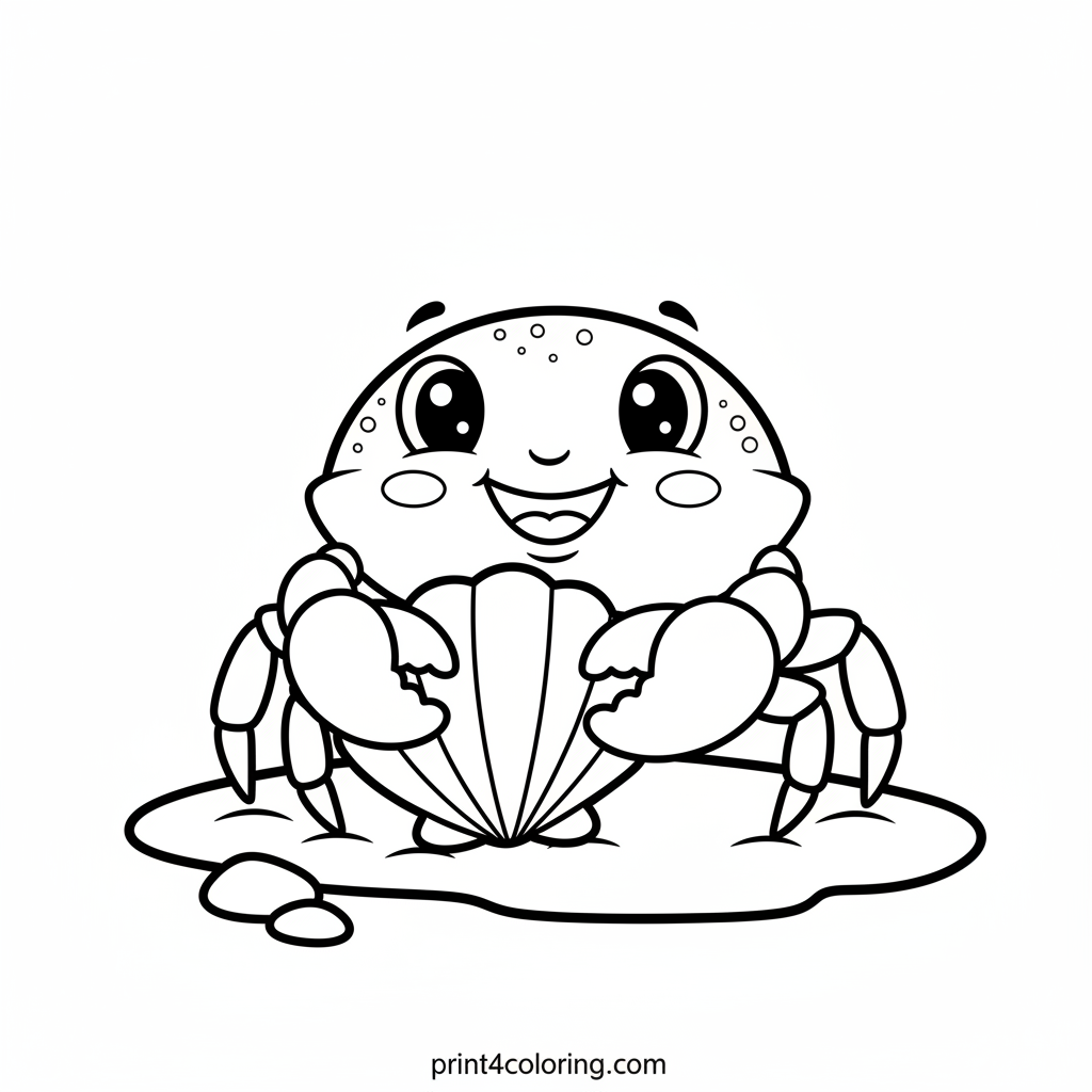 Meet a super cute baby crab with the friendliest big eyes! This adorable little crab is carefully holding a beautiful seashell, found right on the sunny, sandy beach. Imagine all the wonderful colors you can use to bring this sweet scene to life, from the soft sand to the shiny shell and the happy crab.