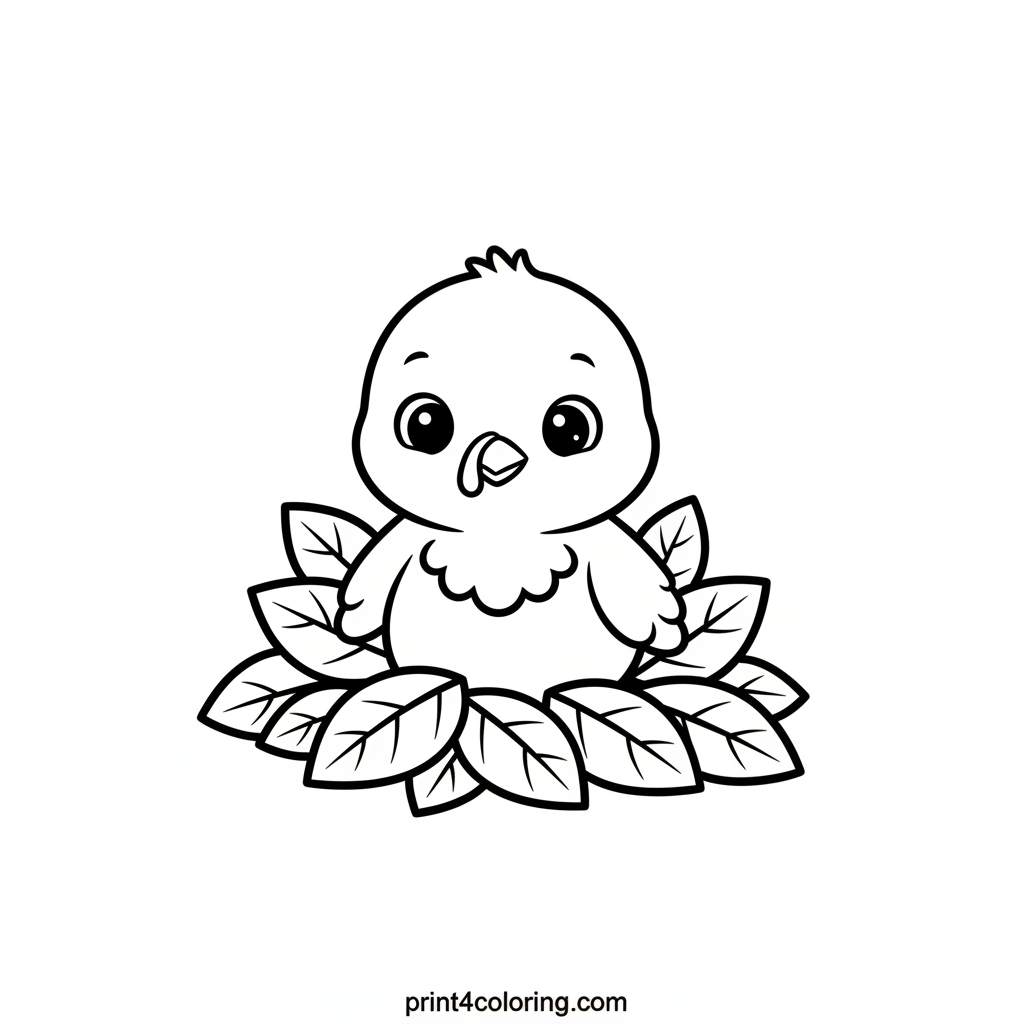 #baby turkey#autumn#fall leaves#cute animal#nature#thanksgiving#coloring-page#printable