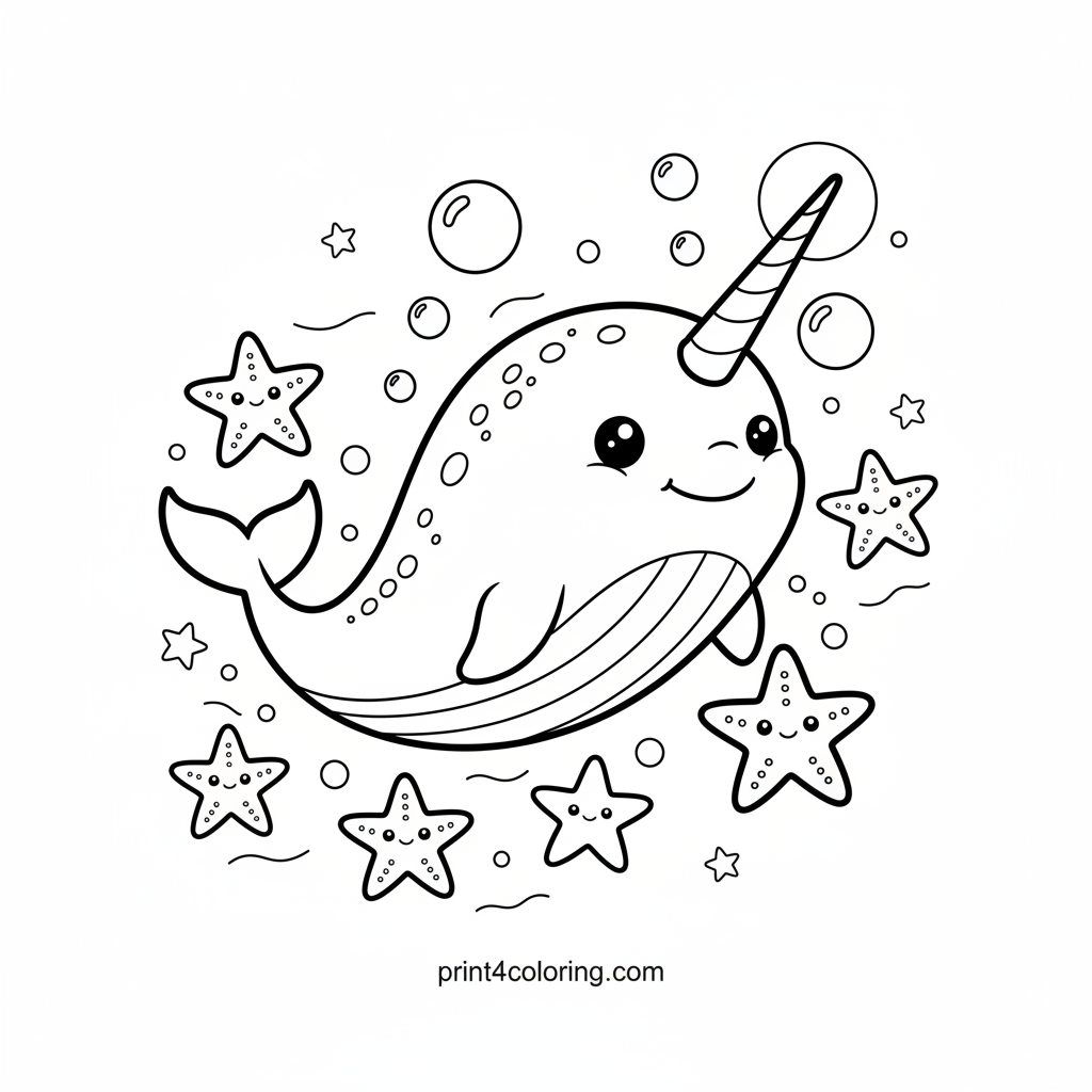 #narwhal#ocean#sea#underwater#magic#stars#dream#marine-life#coloring-page#printable