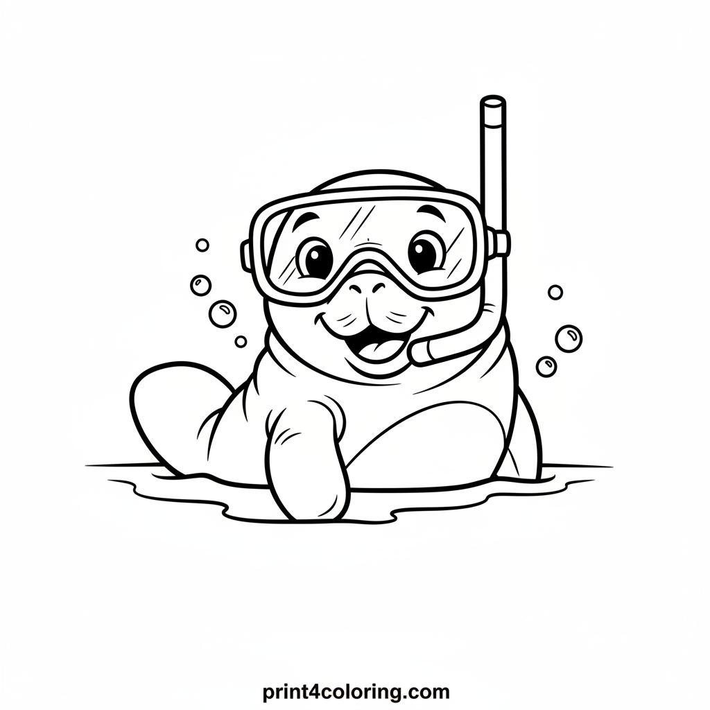 Dive into fun with this adorable manatee! Our friendly sea cow is ready for an underwater adventure, peeking out with a funny snorkel mask and flippers. Imagine the vibrant colors of the ocean as you bring this curious creature to life. Get ready to color a splashing good time!