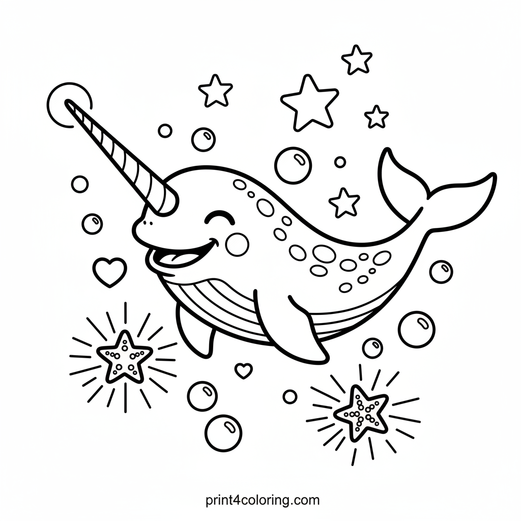 #narwhal#ocean#stars#magic#underwater#coloring-page#printable