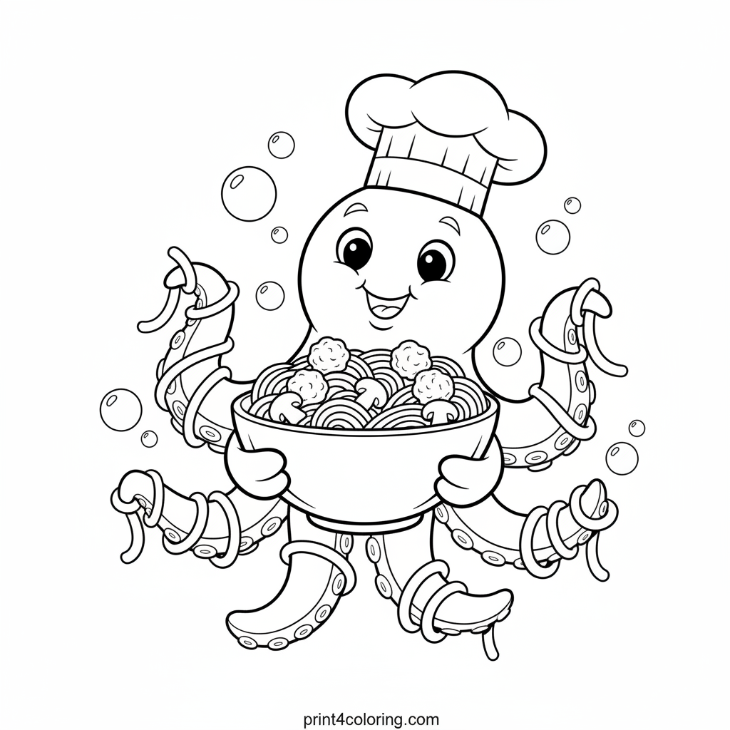 Octo-Chef's Spaghetti Spectacle! Coloring Page