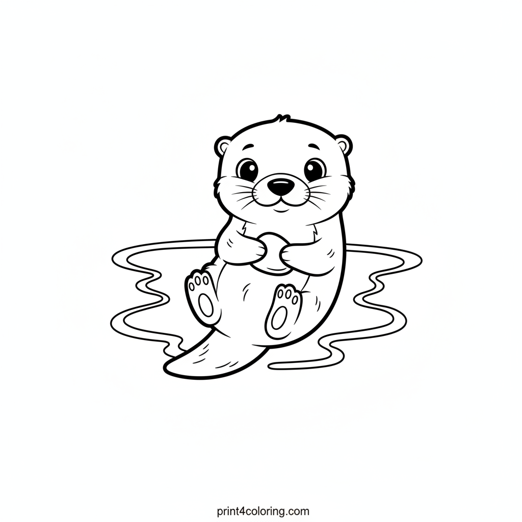 Dive into a calm scene with a delightful baby otter, floating peacefully on its back. This happy little otter gently holds a smooth, round pebble on its tummy with its tiny paws, its big, friendly eyes sparkling with joy. A perfect page for a tranquil coloring adventure!