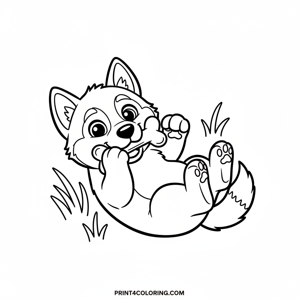 Get ready to color a super adorable husky puppy! This fluffy friend is having a blast, rolling playfully on its back with a favorite squeaky toy bone. With big, friendly eyes and a wagging tail (even if it's upside down!), this playful pup is full of joy. A simple grassy background awaits your creative colors.