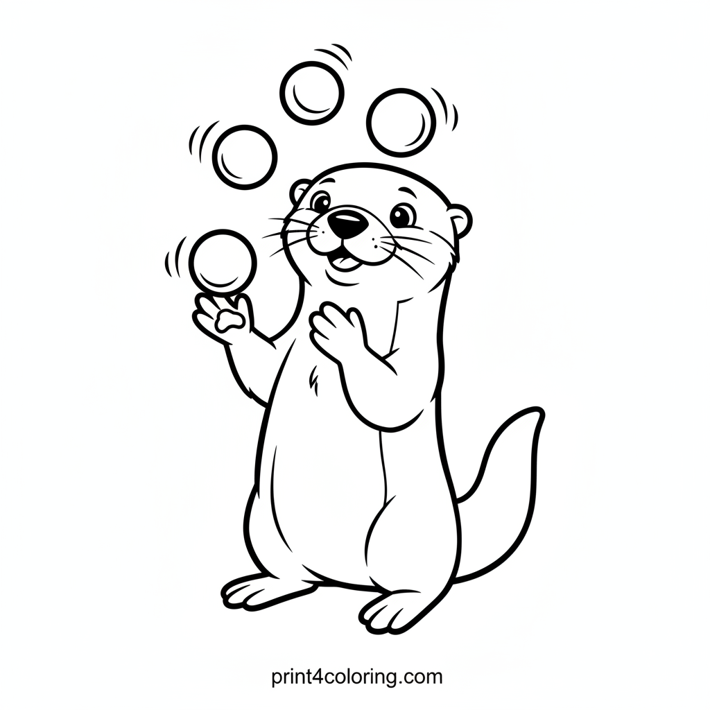 Get ready for a splash of fun! A playful otter stands on its hind legs, expertly juggling three smooth, colorful pebbles with its front paws. With a focused and mischievous look, this clever creature invites you to add vibrant colors to its amazing act. What a talented little juggler!