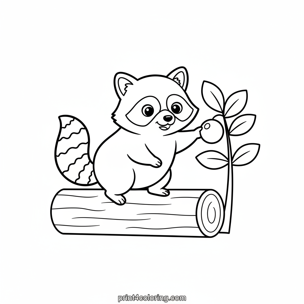 Join a clever racoon as it carefully balances on a fallen log, stretching out a paw to pluck a sweet, juicy berry from a nearby bush. This playful scene captures the racoon's nimble moves and determination to find a delicious snack in the forest. Get ready to add vibrant colors to this adorable woodland adventure!