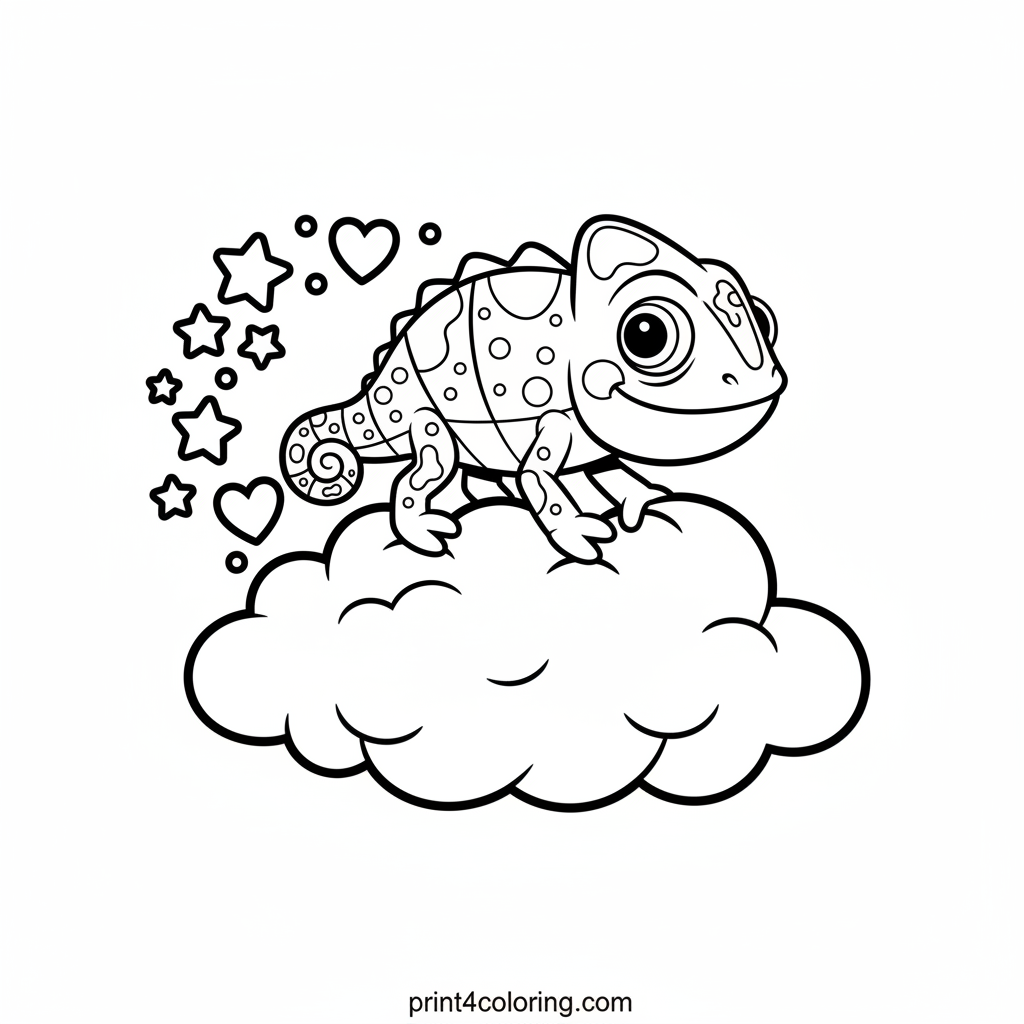 - 4🌈 Magical Background - Think about a soft, gradient sky in the background, perhaps with a few stars, to complement the vibrant chameleon and its colorful cloud journey.