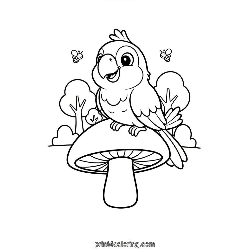 Rainbow Parrot's Magical Mushroom Perch Coloring Page