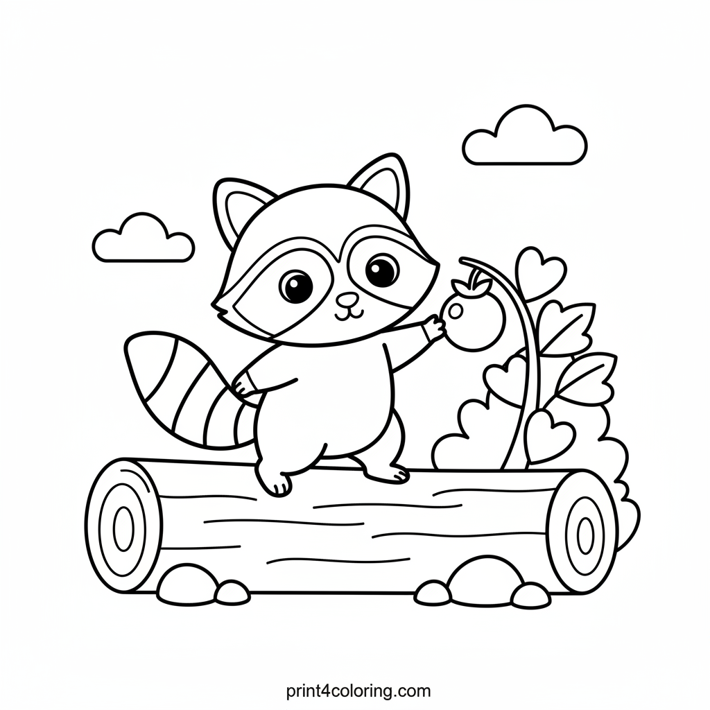 Join a clever little raccoon on a thrilling berry hunt! Watch as this furry friend expertly balances on a fallen log, stretching a paw towards a plump, ripe berry. Imagine the sweet taste as you bring this adventurous forest scene to life with your favorite colors. Perfect for a fun coloring challenge!
