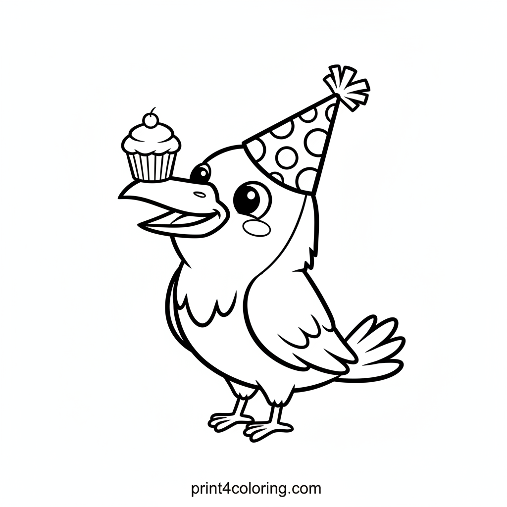 #raven#bird#party#hat#cupcake#silly#funny#celebration#animals#easy#coloring-page#printable