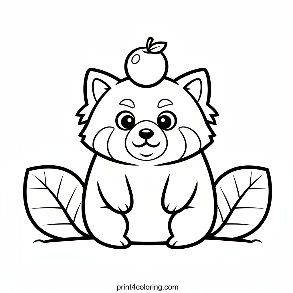 Meet a super cute, mischievous red panda showing off amazing balancing skills! This little fella has a big, round berry perched perfectly on its head like a funny hat. Its expression is a mix of surprise and pride. Get ready to add vibrant colors to this adorable forest friend and its fruity accessory!
