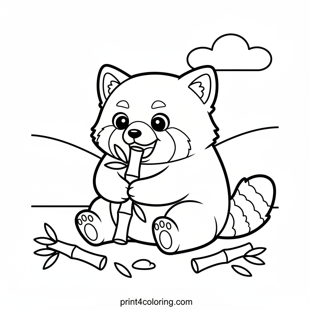 Red Panda's Delightful Bamboo Snack Coloring Page