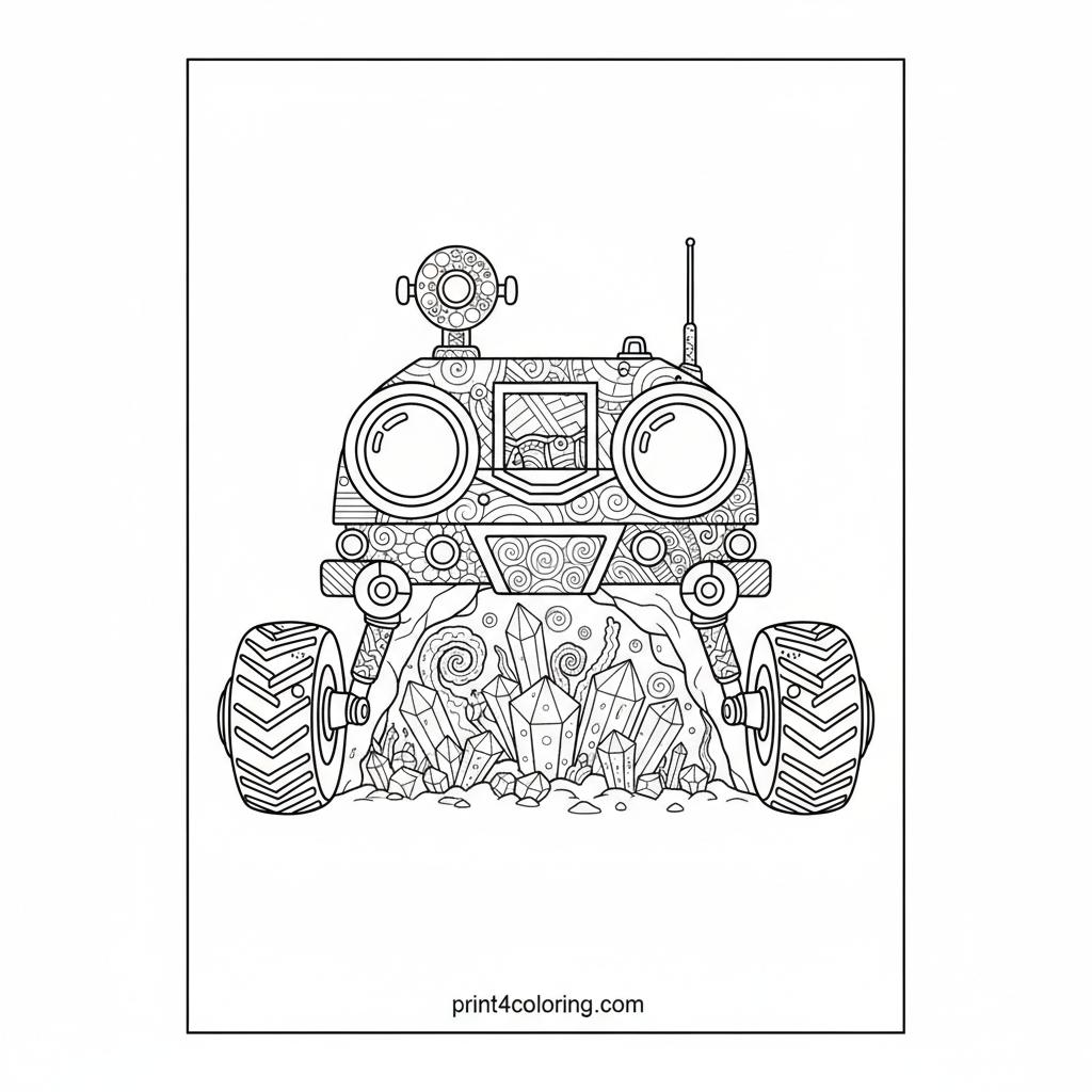 #lunar-rover#moon-cave#crystals#zentangle#space#sci-fi#bioluminescent#discovery#hard-difficulty#coloring-page#printable