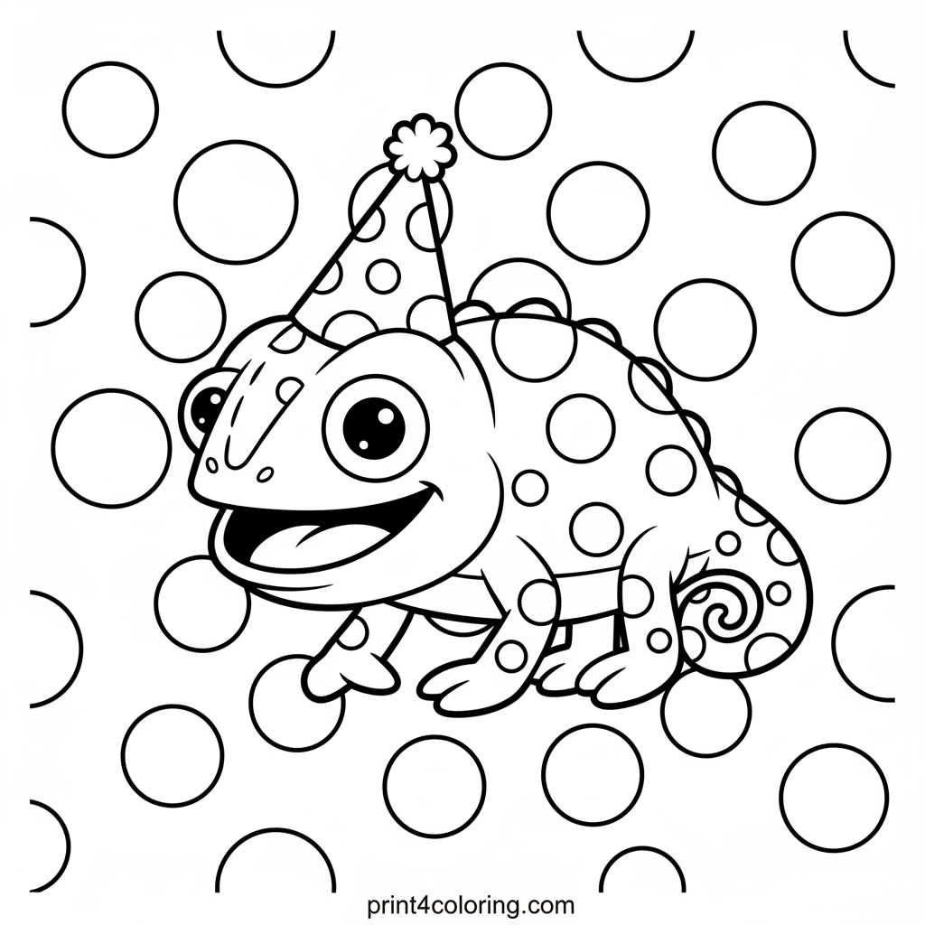 Silly Chameleon's Polka-Dot Party Coloring Page