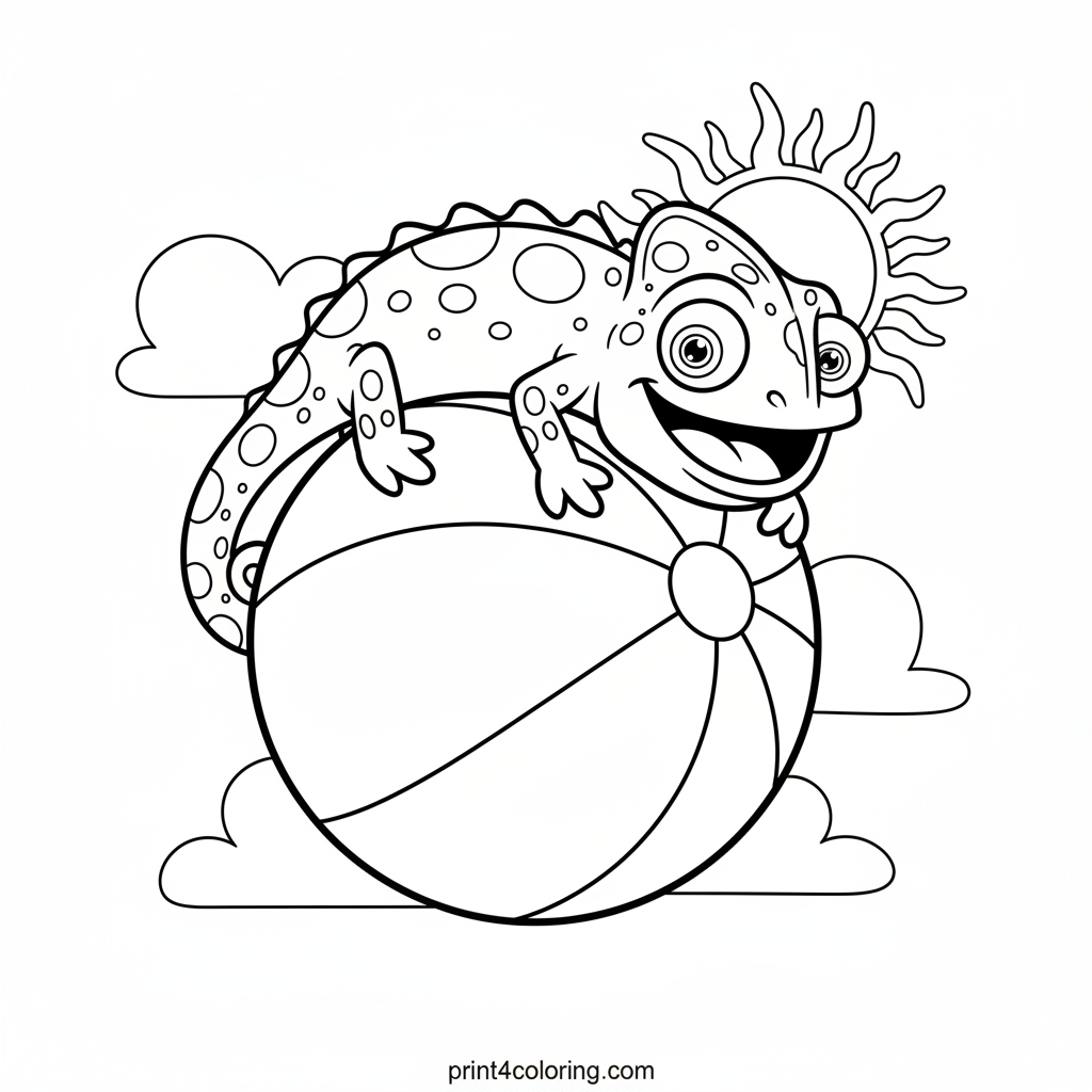 - 1🎨 **Chameleon's Colors** - Since our chameleon is failing at camouflage, give it the silliest, brightest colors you can imagine! Maybe polka dots or stripes that don't match the beach ball at all.