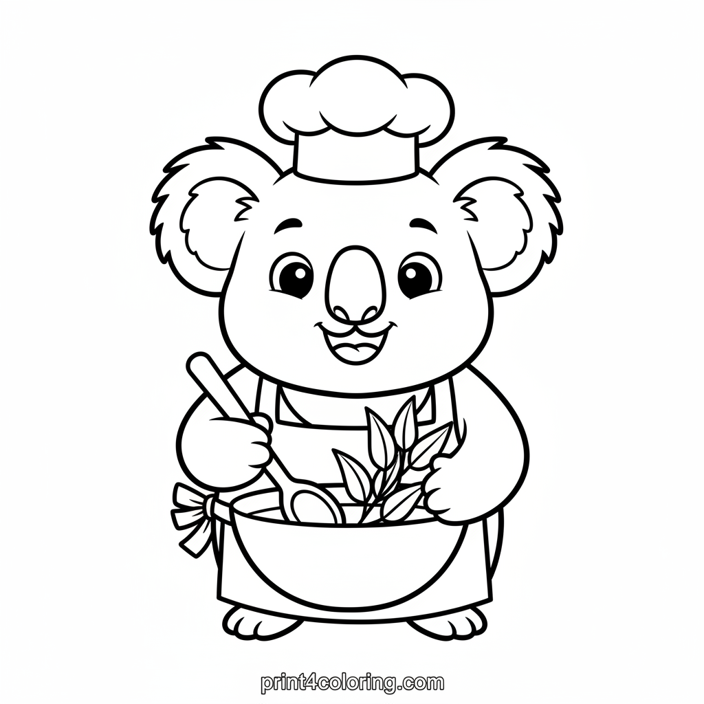 #koala#chef#cooking#animals#cute#leaves#food#funny#coloring-page#printable