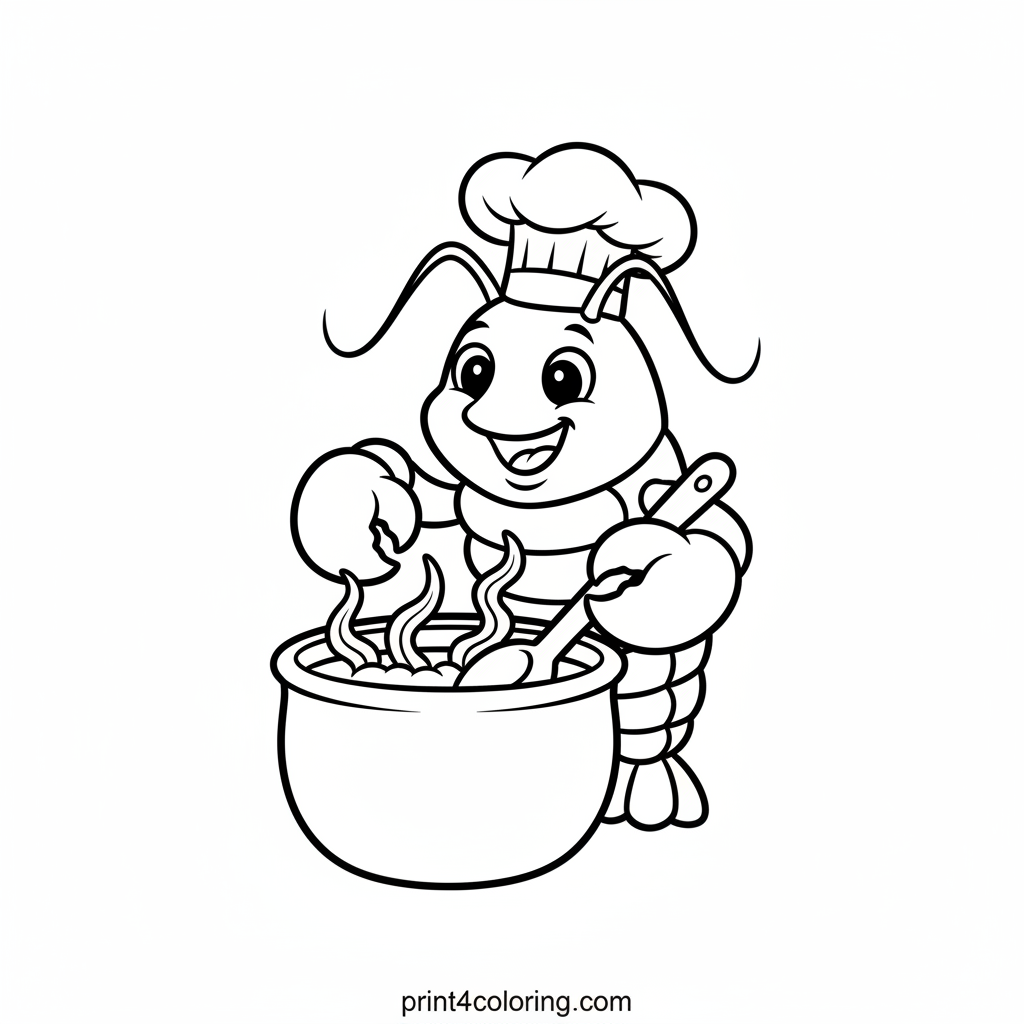 Silly Chef Lobster's Seaweed Stir Coloring Page