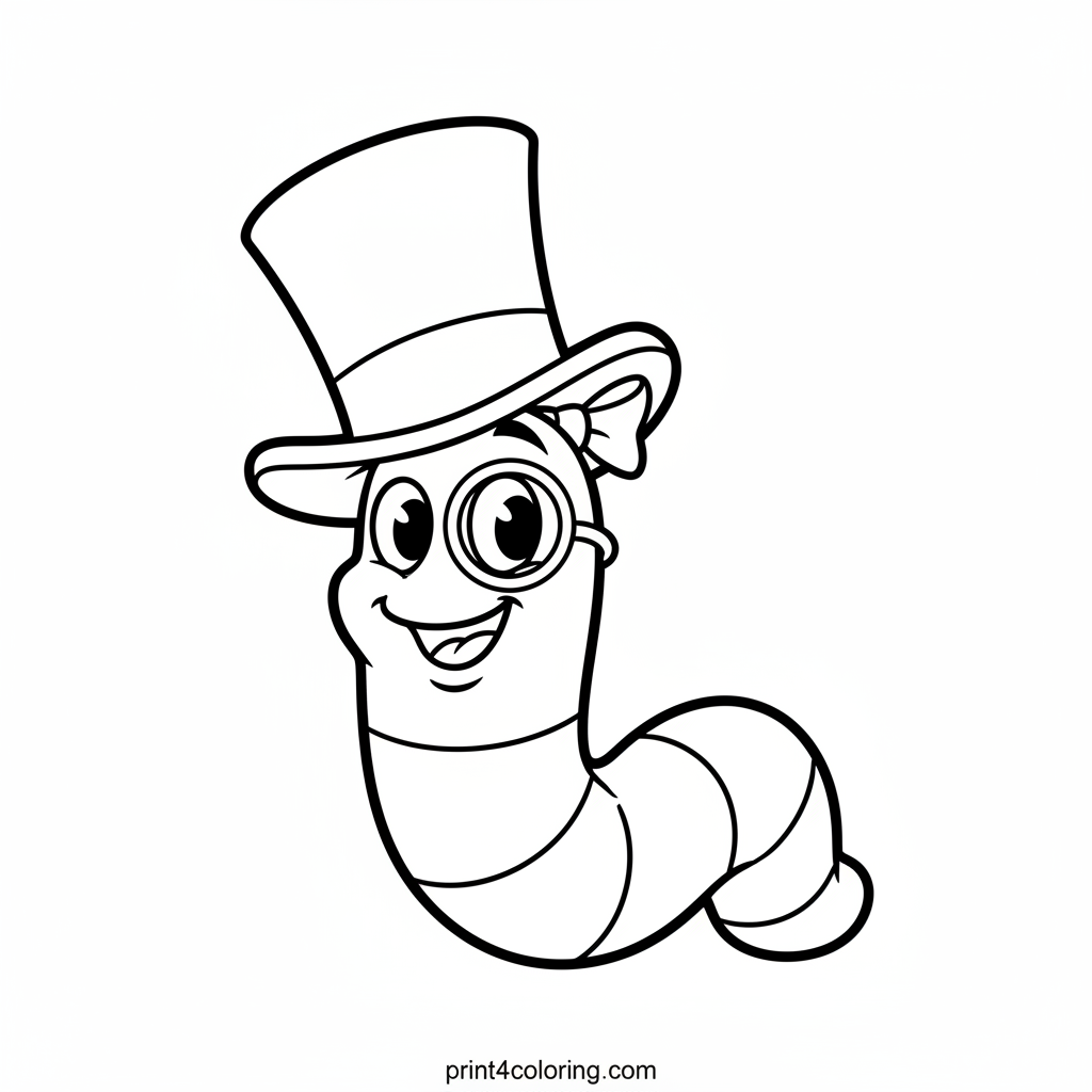 Meet Sir Wigglesworth, the most charming worm in the garden! He's a very polite and funny little fellow, sporting a tiny, oversized top hat and a shiny monocle. Catch him in a moment of friendly surprise, perhaps even tipping his hat to say hello. Get ready to add vibrant colors to this dapper gentleman of the soil!