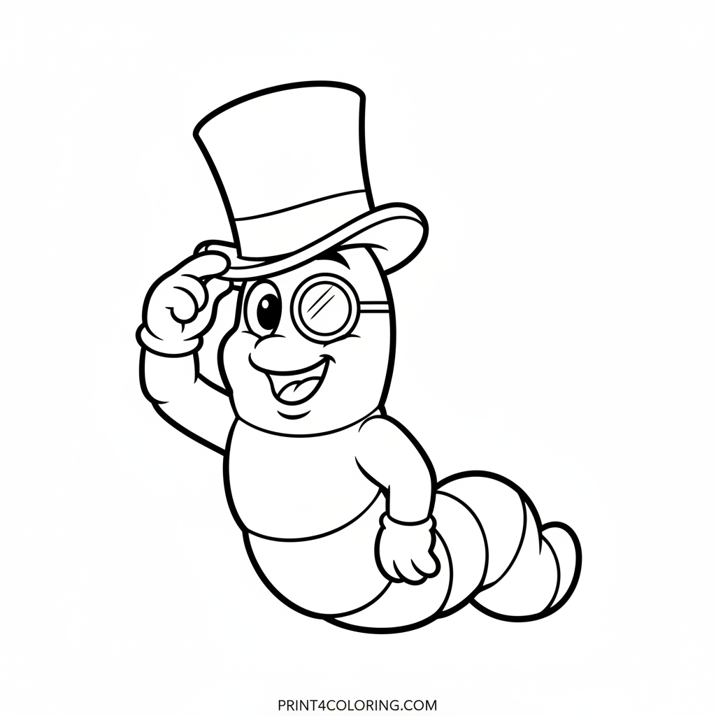 #worm#funny#polite#hat#monocle#character#cute#coloring-page#printable