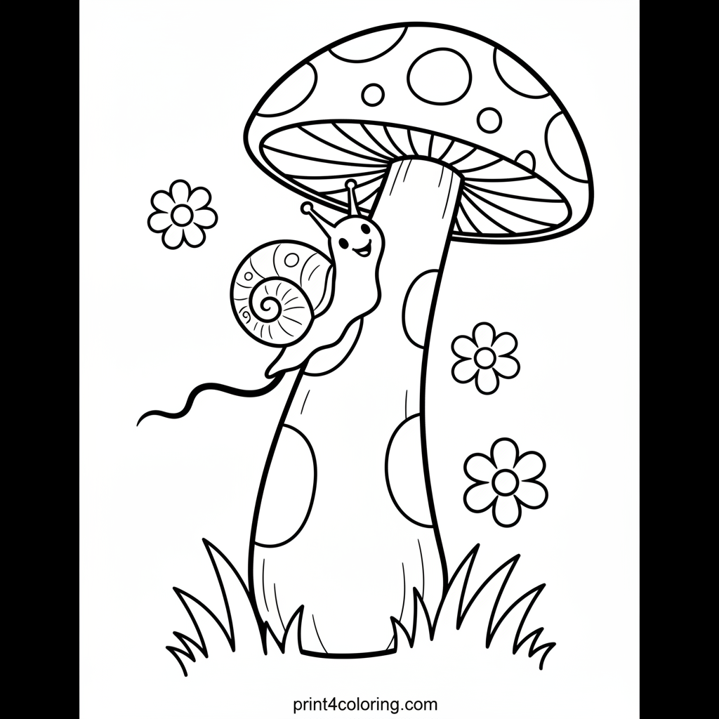 Join our little snail friend on an exciting journey! Watch as it slowly but surely makes its way up a giant, friendly mushroom stem, leaving a shimmery, wiggly trail behind. Its tiny antennae are reaching out, exploring the path ahead. This page celebrates patience and perseverance in a fun, natural scene.