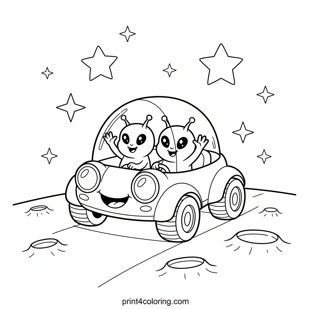 - 2🖍️ Cosmic Contrast - Use bright, contrasting colors for the aliens and buggy against a darker, starry sky to make them pop.