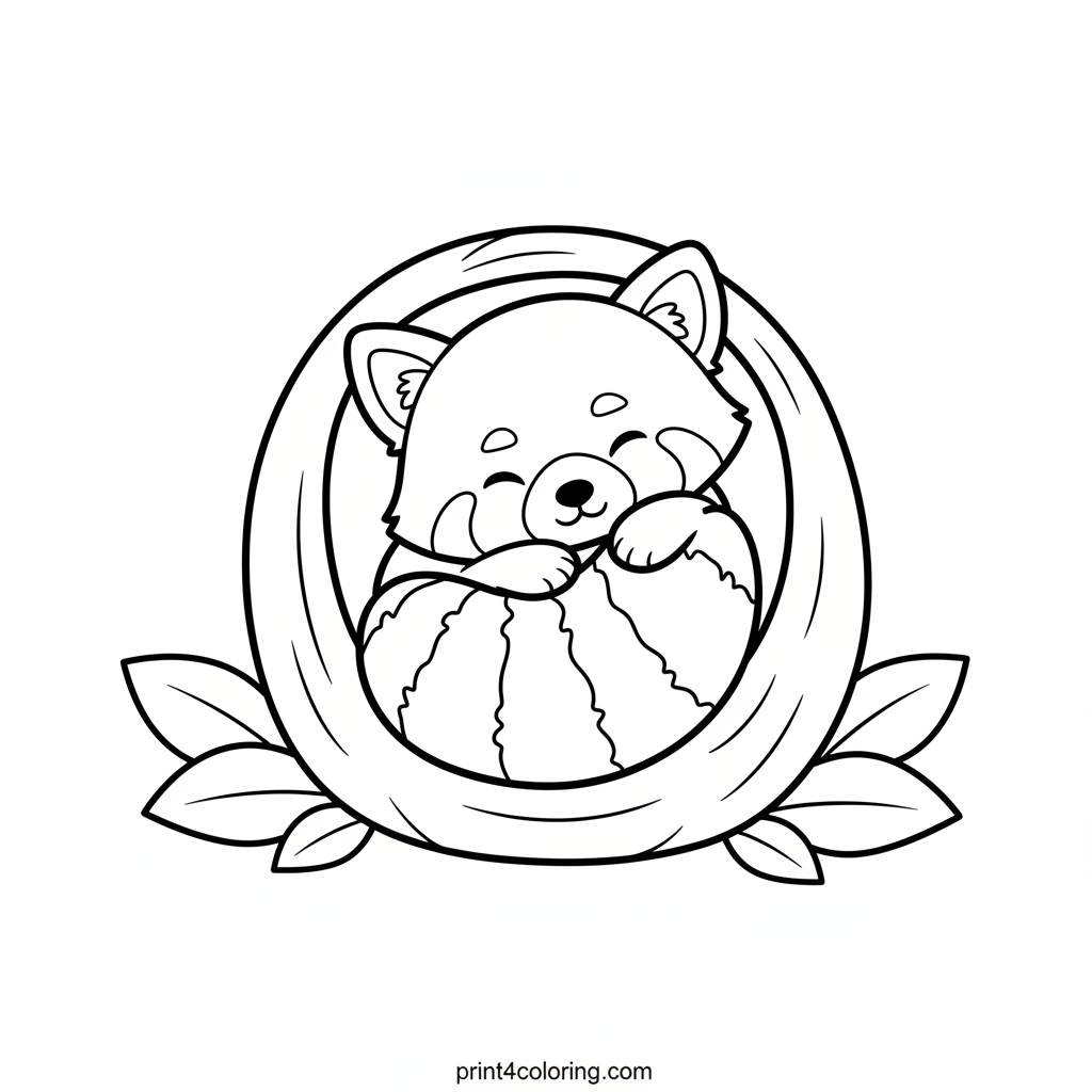 Drift into dreamland with this adorable baby red panda! Curled up cozy in a tree hollow, our little friend is fast asleep, smiling sweetly amidst soft green leaves. Imagine the fluffy fur and bushy tail. This peaceful scene is perfect for bringing to life with your favorite colors. A perfect, relaxing coloring adventure!