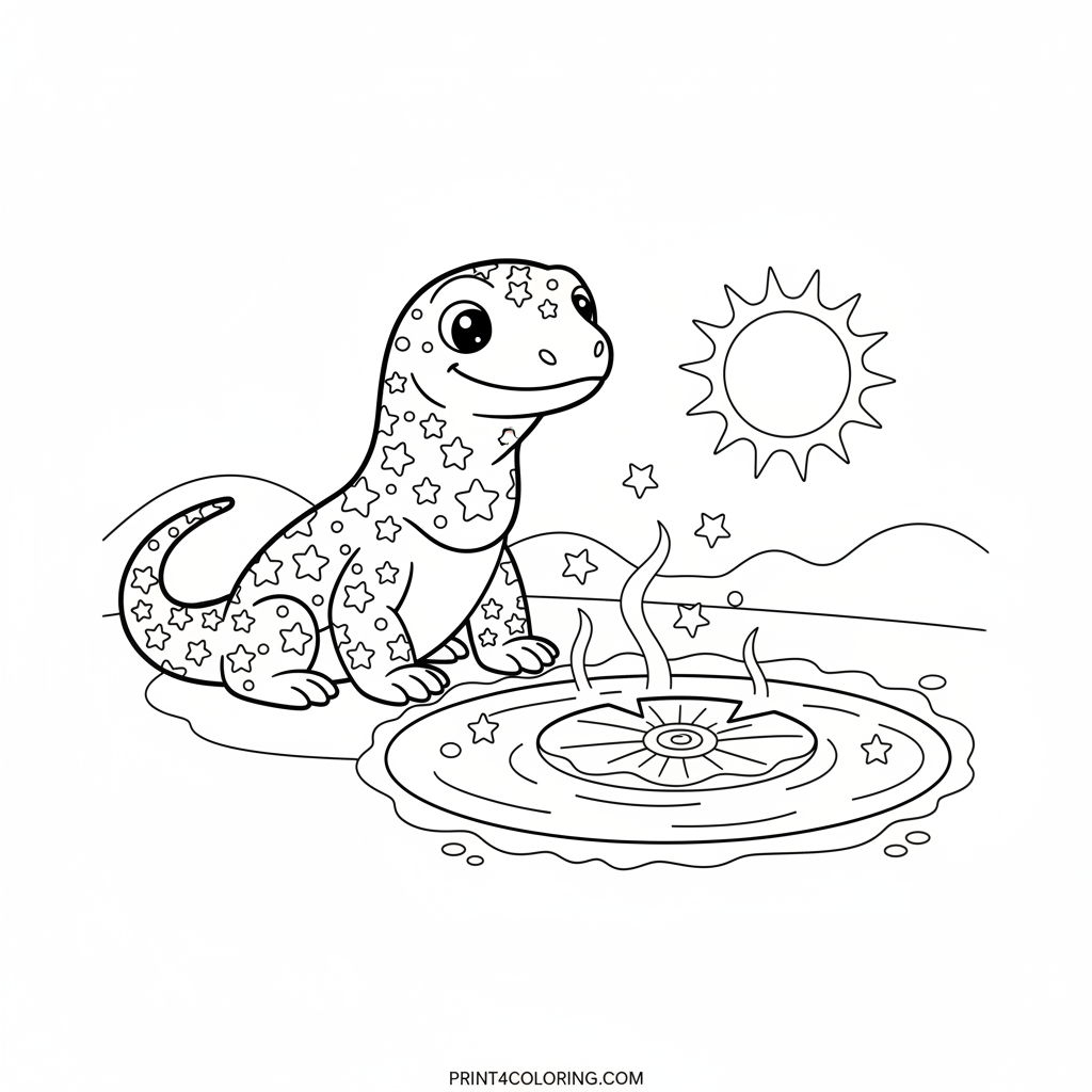 Sparkle Scale Komodo's Magical Pond Coloring Page