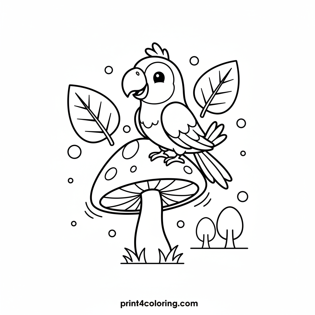 Sparklewing Parrot's Mushroom Perch Coloring Page