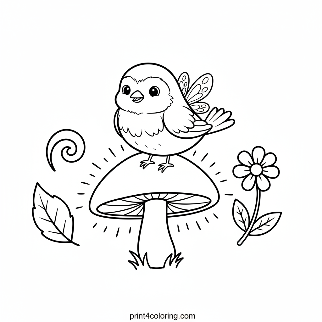 Sparklewing Robin's Magical Mushroom Coloring Page