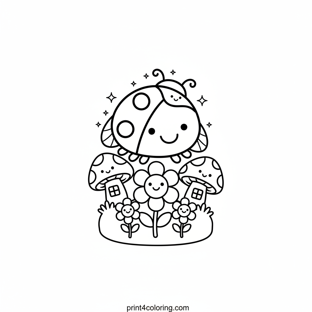 Sparkling Ladybug in a Whimsical Garden Coloring Page