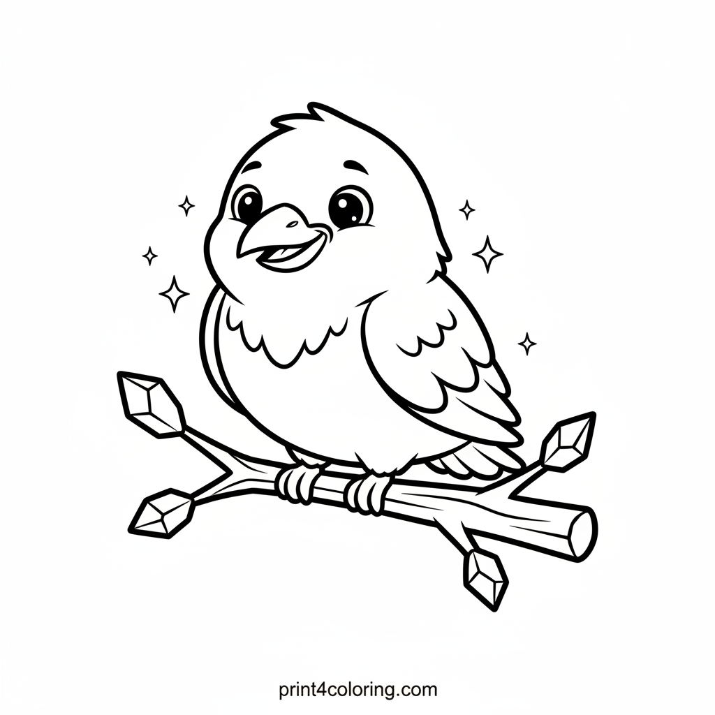 Meet a friendly raven whose feathers shimmer with tiny, magical star-like sparkles! This enchanting bird is perched on a strong branch made of smooth, rainbow-colored crystals. Use your brightest colors to bring this magical scene to life, adding your own touch of glow to its sparkling feathers!