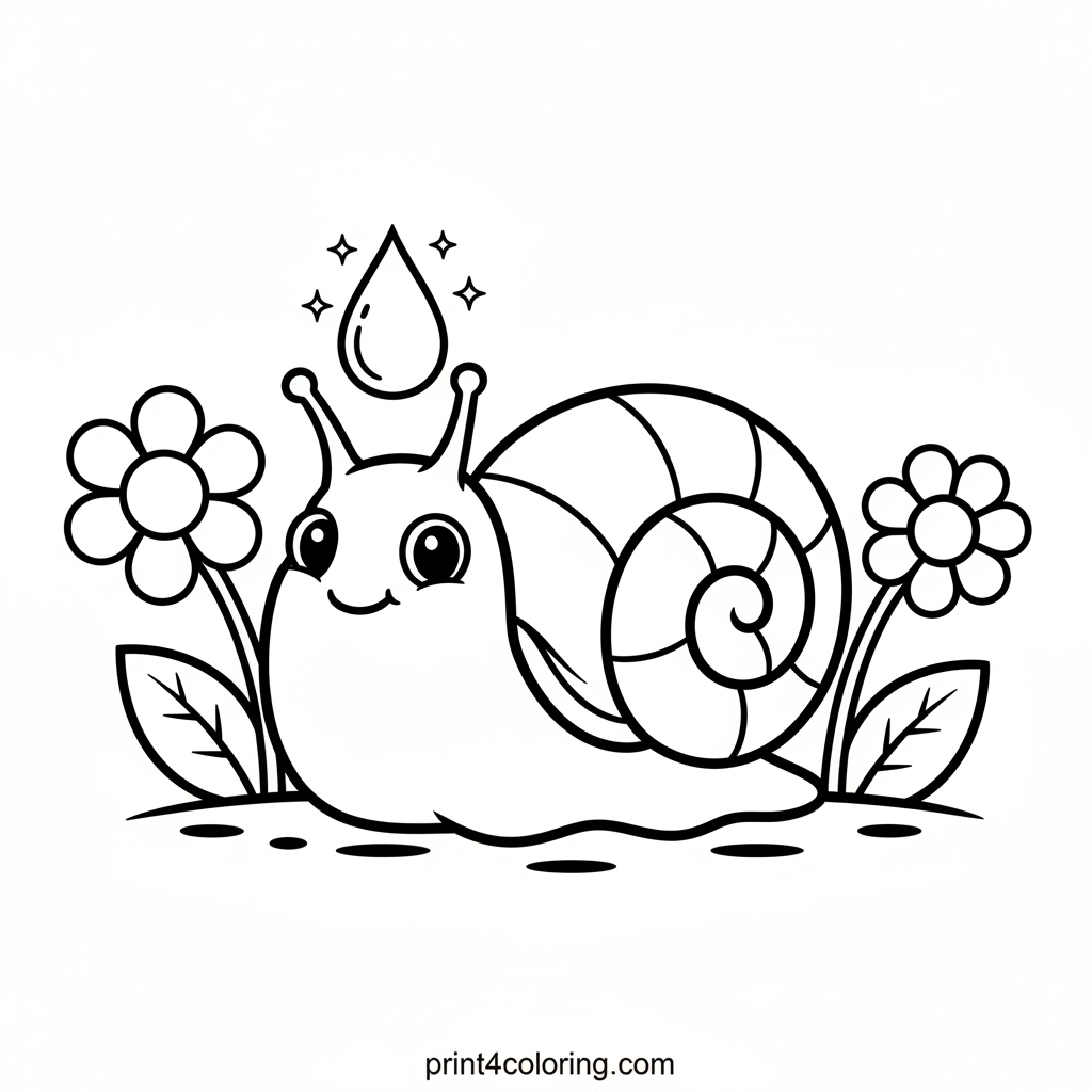 Meet our delightful snail friend, beaming with a big smile and gentle eyes! This plump little pal is wearing a magical sparkling dewdrop like a tiny hat on its head. Its wonderfully swirly shell is just waiting for you to bring it to life with your favorite colors. Get ready for a slow and colorful adventure!