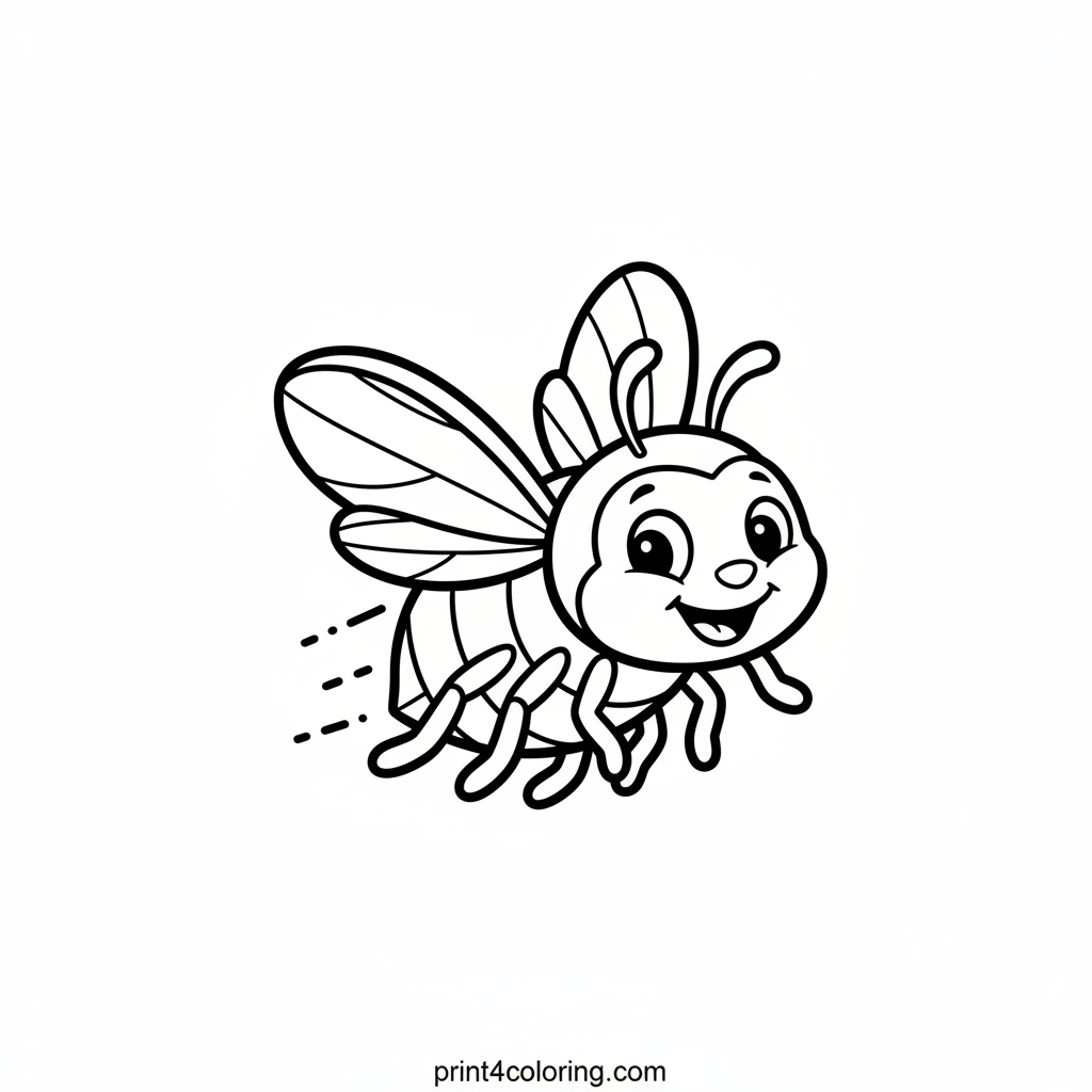 Get ready for an adventure with our speedy beetle friend! This page shows a friendly beetle mid-flight, wings spread wide, zipping through the air. A simple dashed line trails behind it, capturing its quick journey. It's a fun scene perfect for little artists to bring to life with vibrant colors and imagination!