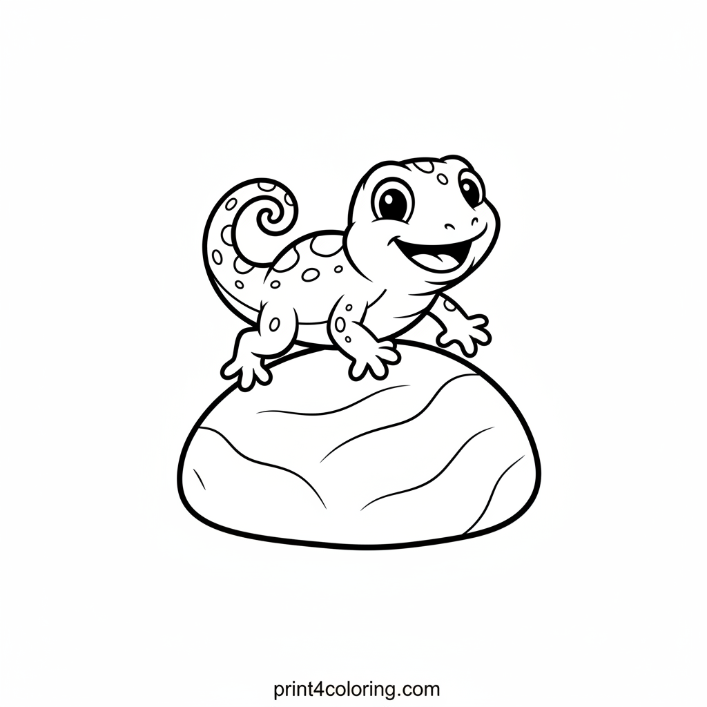 Watch our happy, energetic lizard as it quickly scampers up a large, smooth rock in the warm sunshine! Its long tail helps it balance perfectly while it races upwards. Imagine the bright sun on its scales and the smooth rock. What vibrant colors will you choose for this speedy climber and its sunny adventure?