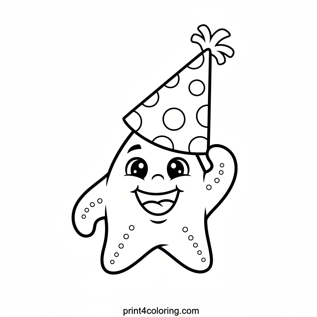 #starfish#ocean#sea-animal#party#hat#silly#celebration#marine-life#coloring-page#printable