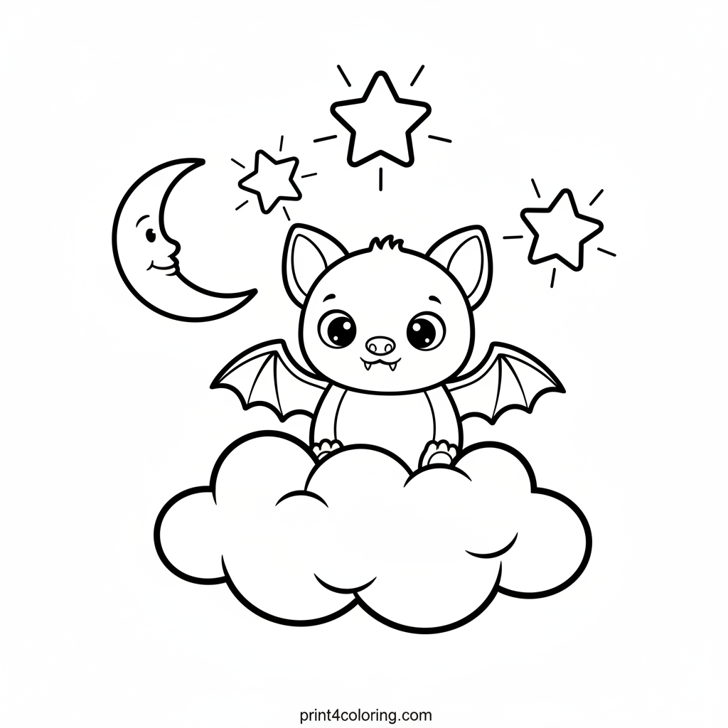 Starlight Bat's Dreamy Night Coloring Page