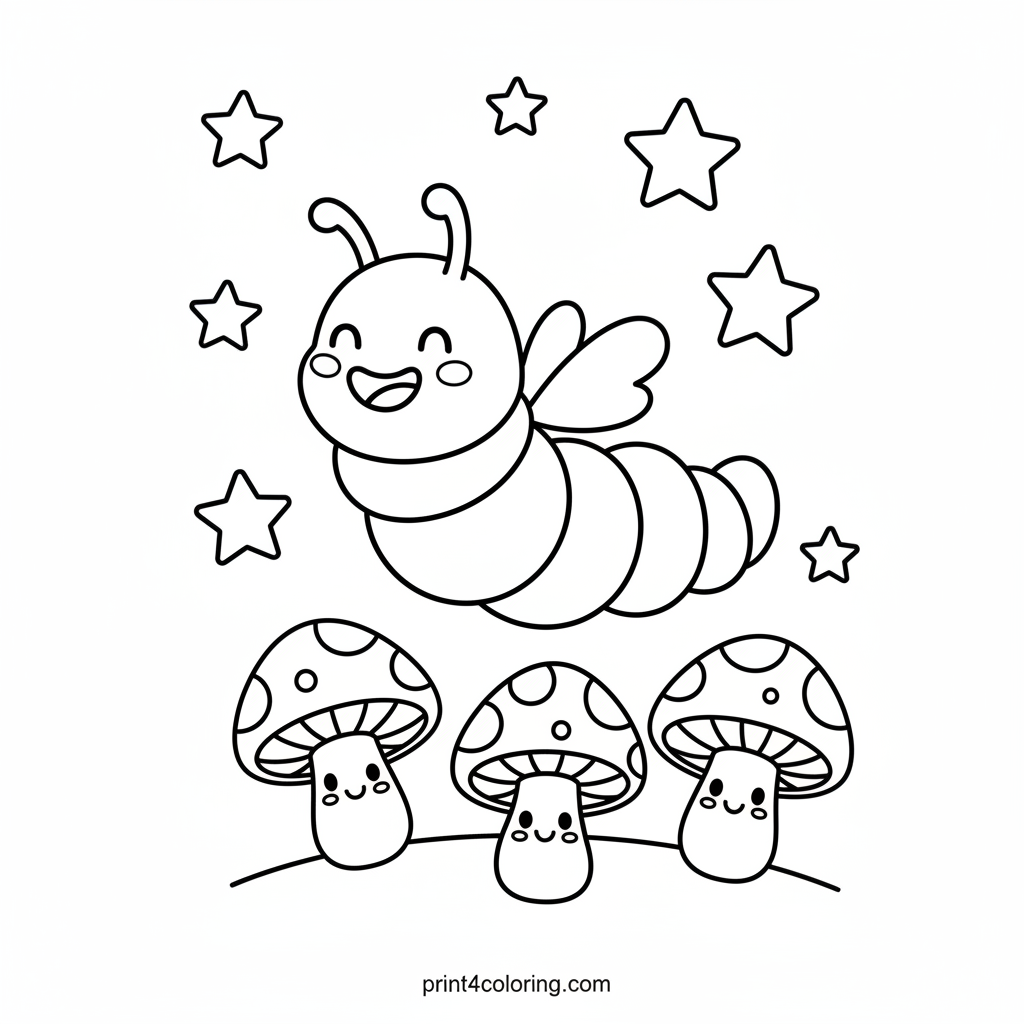 Starlight Worm's Magical Mushroom Flight Coloring Page