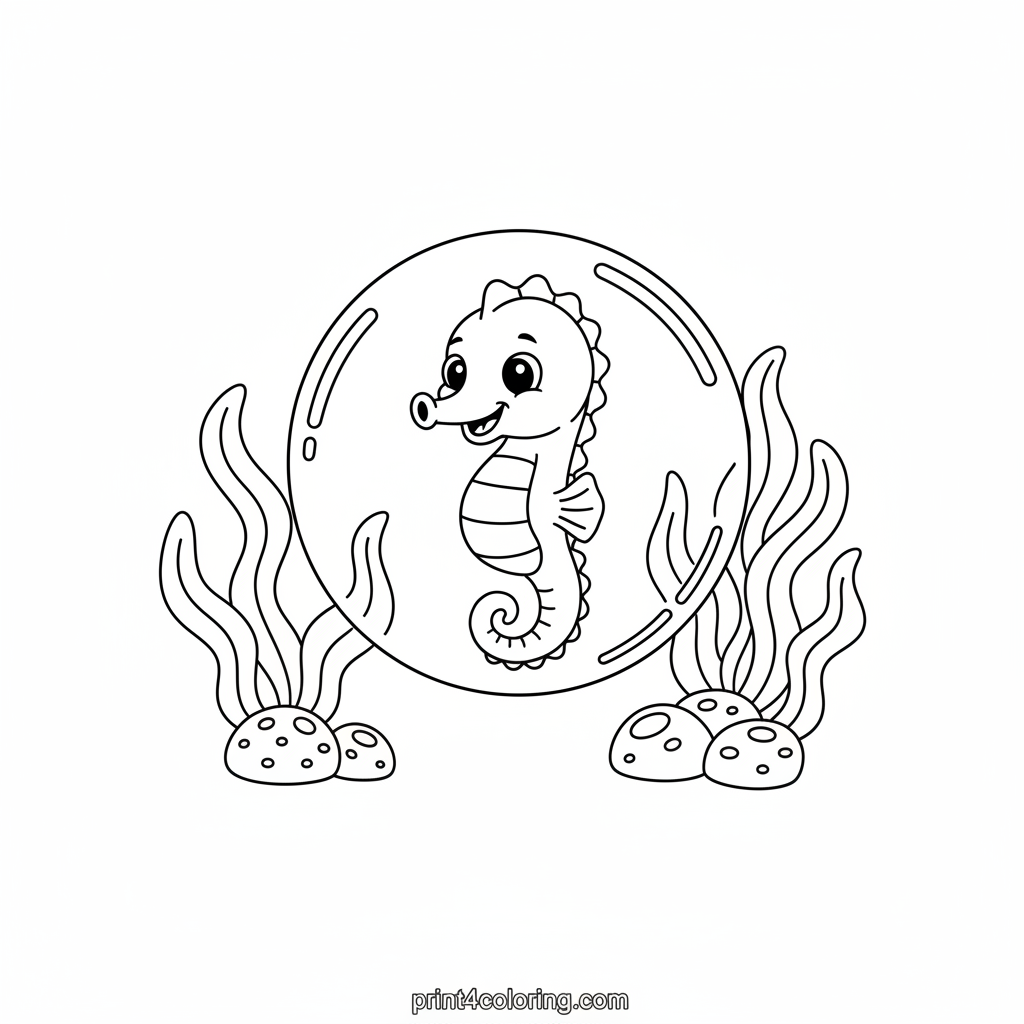 Starry Seahorse's Magical Bubble Ride Coloring Page