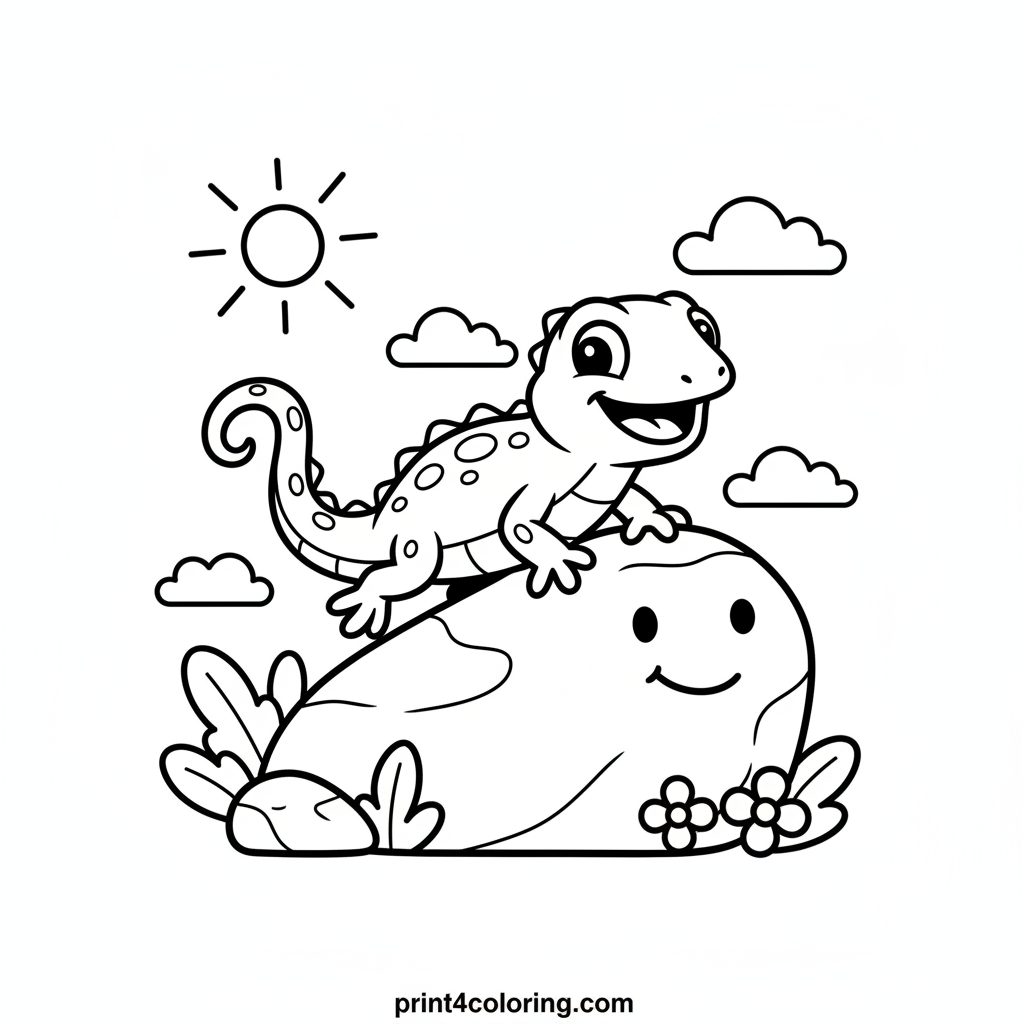 Sunny Scramble: The Happy Rock Lizard Coloring Page