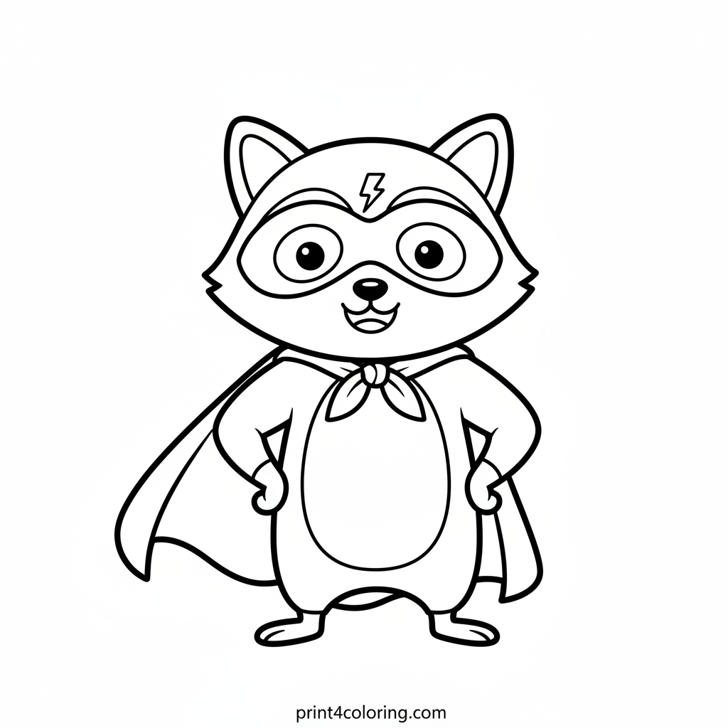 #racoon#superhero#cape#mask#animal#hero#cute#coloring-page#printable