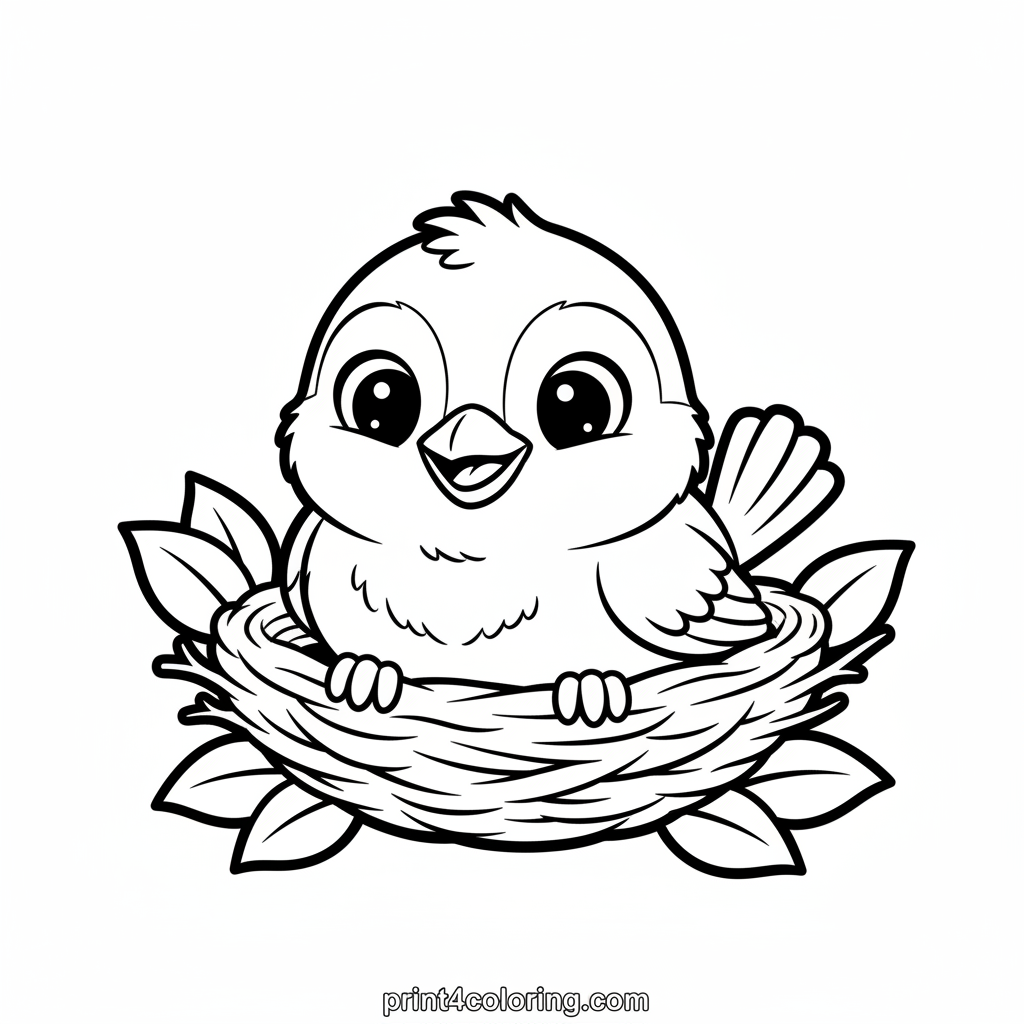 Sweet Baby Sparrow in a Snug Nest Coloring Page